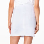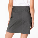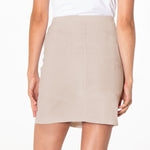 Slim-fitting skort and flat front for a smooth look.