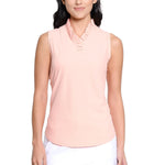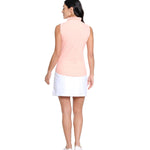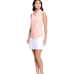 Lightweight and breathable, this sleeveless polo is crafted in textured seersucker for warm-weather performance. A ruffle-trimmed collar and placket add a soft, feminine finish, while the streamlined silhouette keeps the look clean and athletic. Designed in a flexible nylon-spandex blend, it offers comfort, stretch, and ease of movement from tee time to the clubhouse.